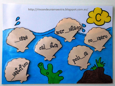 Las tarjetas en forma de concha nos ayudarán a retener esta regla ortográfica.